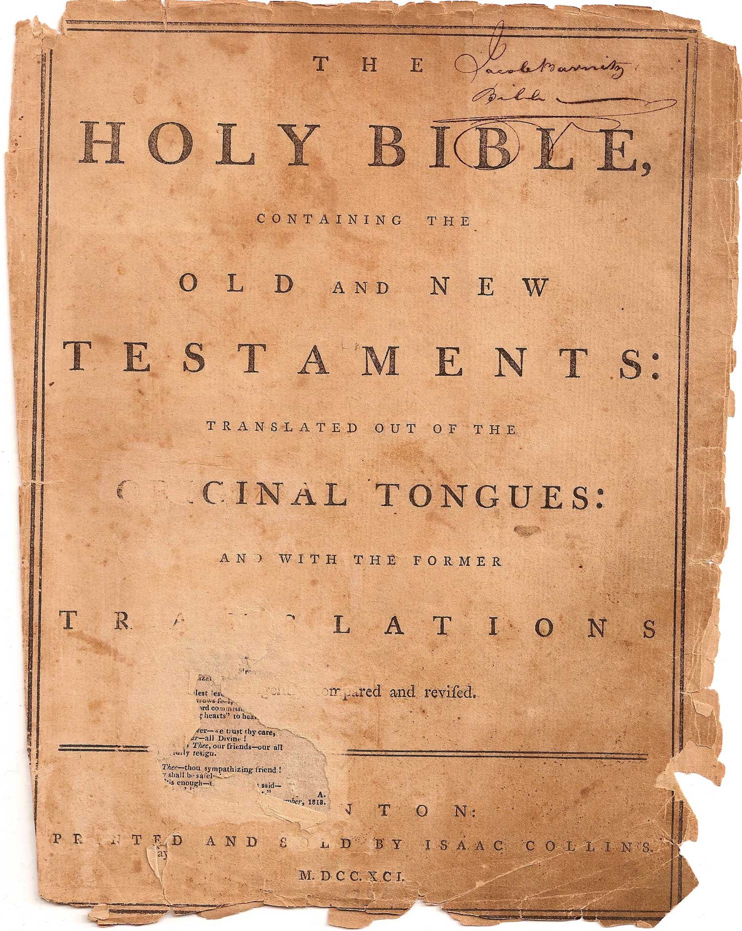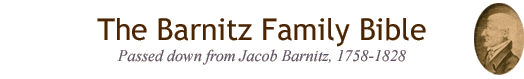 This website provides a pictorial tour of the Jacob Barnitz family bible. Within the book are memetos passed down through generations. The publish date on the bible is 1791.